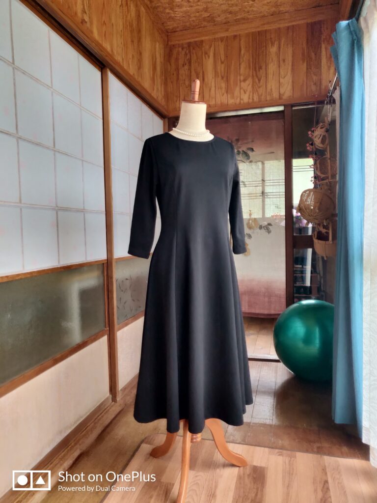 オーダーではこちらのフレアワンピースがダントツ人気です。今回はしっかりハリのある中厚地の黒いニットで。